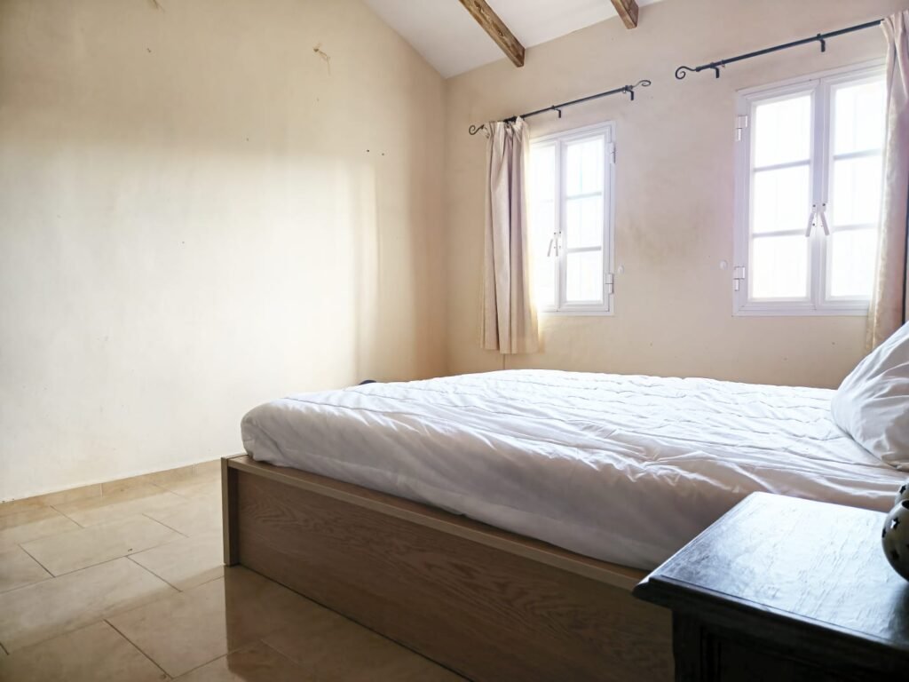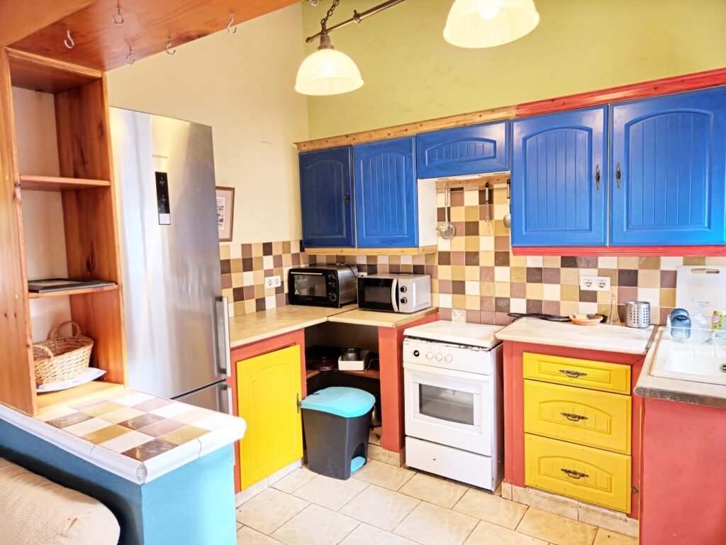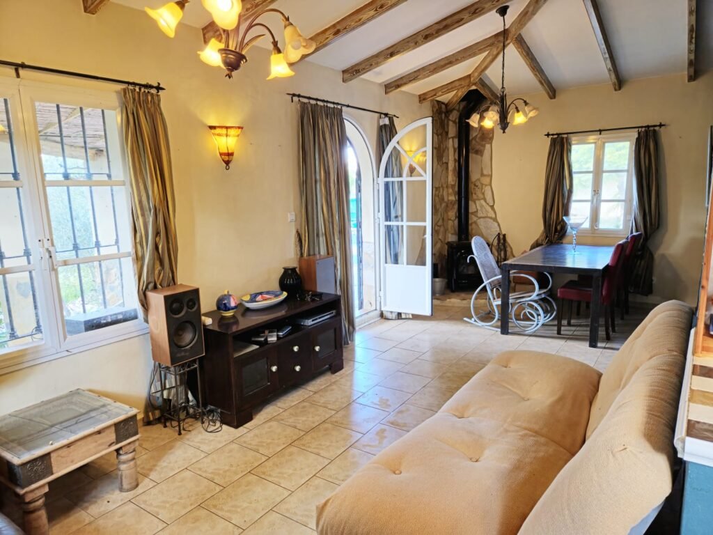 La vivienda principal es una construcción unifamiliar de 144 m² distribuidos cómodamente en una sola planta, lo que garantiza accesibilidad y confort. Cuenta con un amplio y luminoso salón presidido por una chimenea ideal para los inviernos, tres habitaciones espaciosas con armarios empotrados y dos baños completos. La cocina conecta con las zonas exteriores, creando un flujo perfecto entre el interior y la naturaleza.